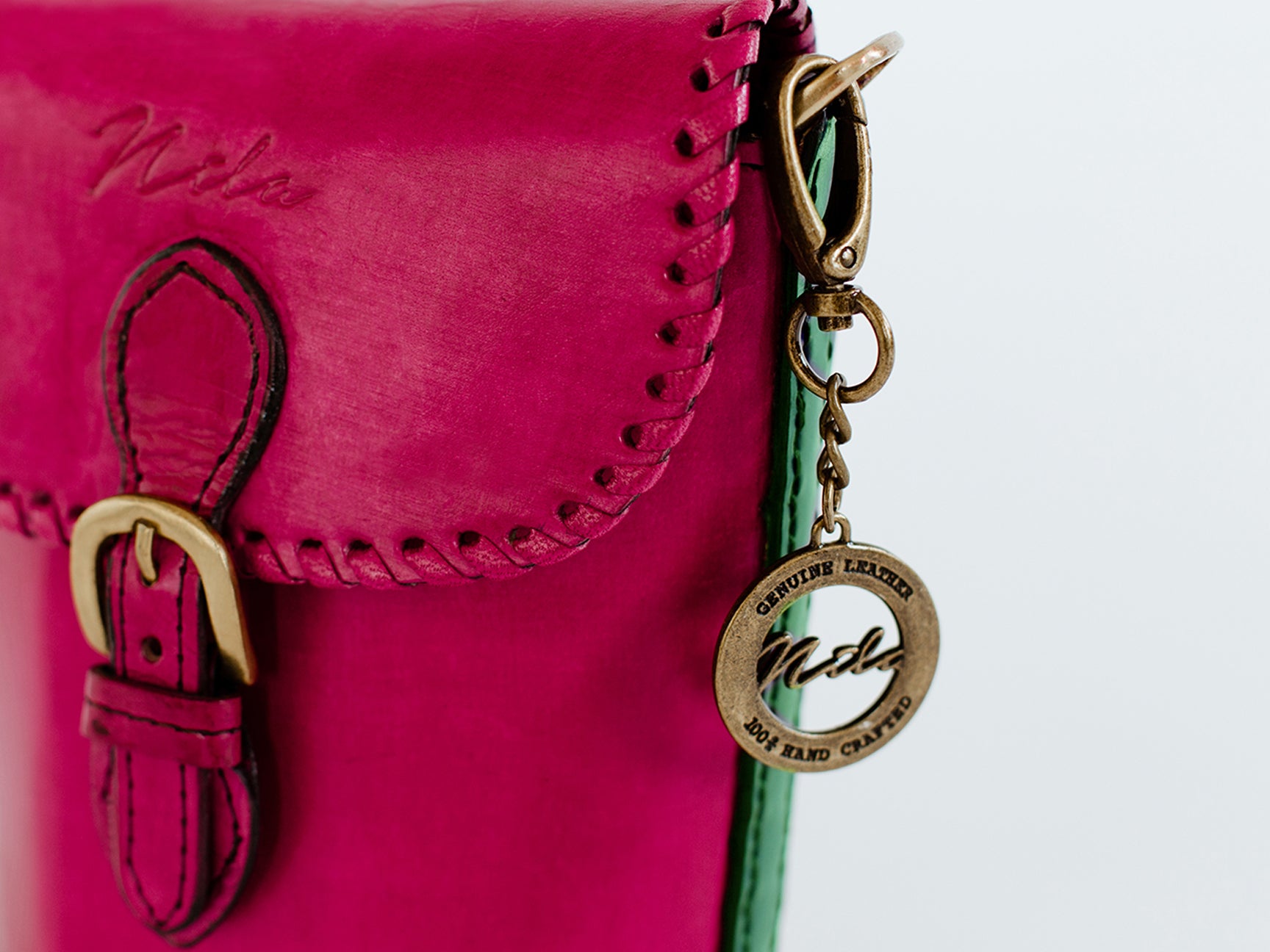 The first one of its kind in the Nila collection. This duo-tone bag is sure to make a splash no matter how you wear it. You can dress it up or down with a simple swap of the handle. The long crossbody leather handle makes it work as a casual all-day bag. Or simply swap the handle with the short under-arm to make it an unbelievably elegant accessory for an evening.